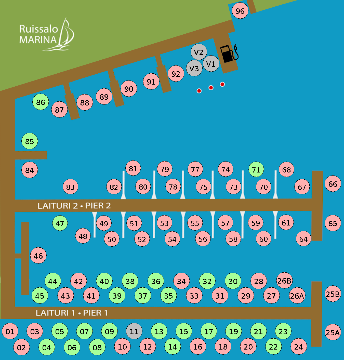 Säsongsplatsen inkluderar el, vatten samt möjlighet att tömma septiktanken.