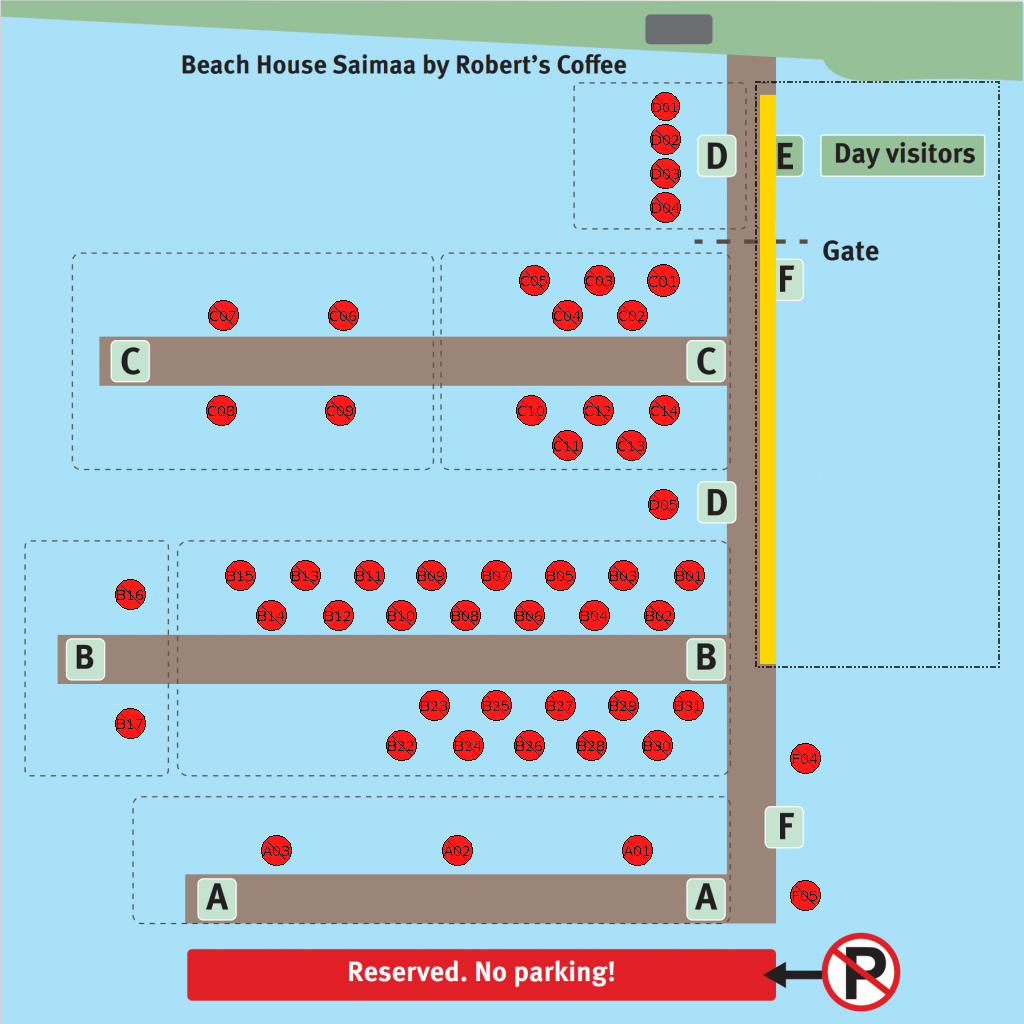 In the attached map, you can see the current availability of spots that can be reserved in advance. By clicking on a spot on the map or the “Book” button below, you can reserve the desired spot and time.