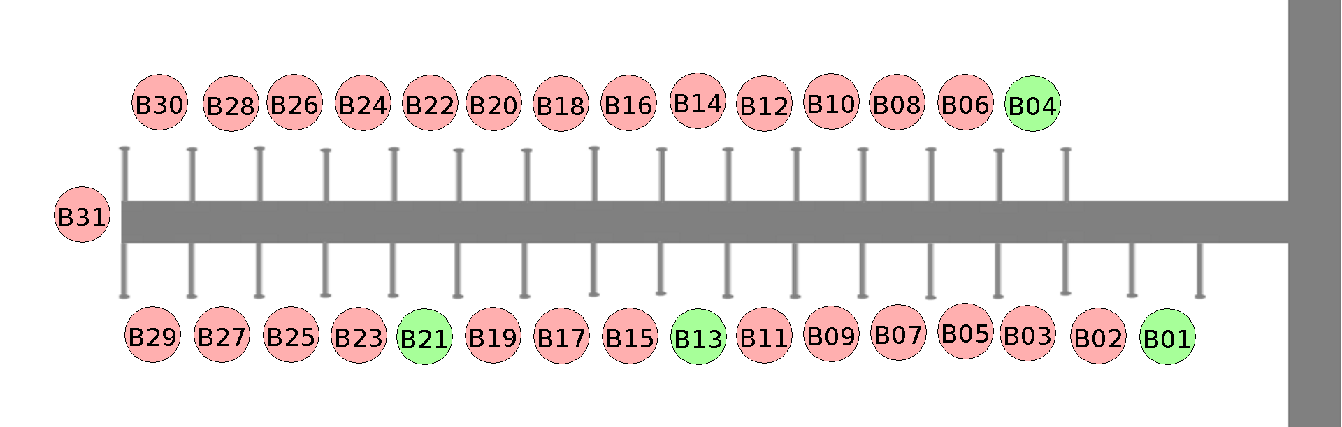 Grönmarkerade platser är lediga för bokning.