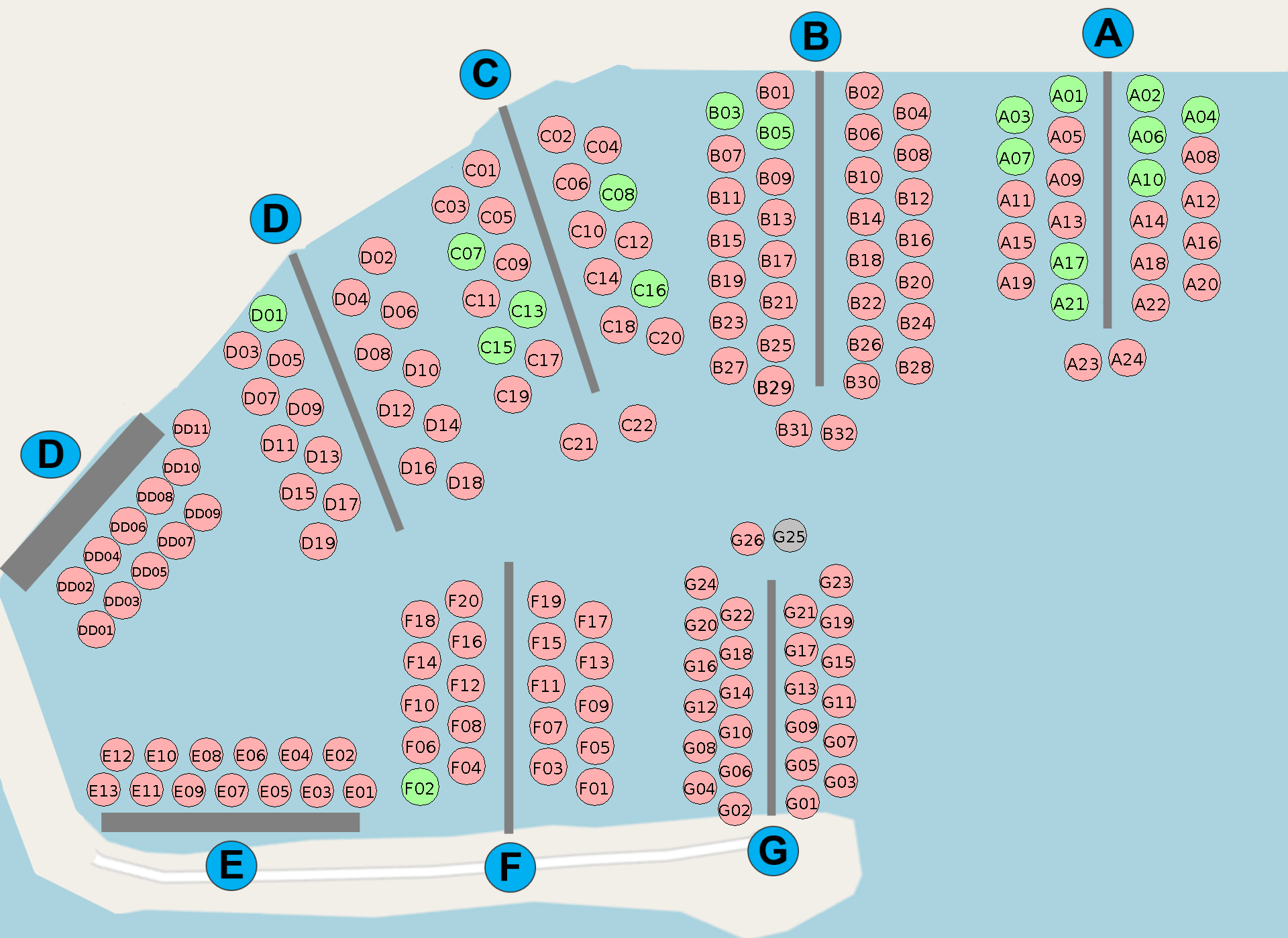 En årsavgift tas ut för båtplatsen. Båtplatser hyrs ut genom den tekniska avdelningen.